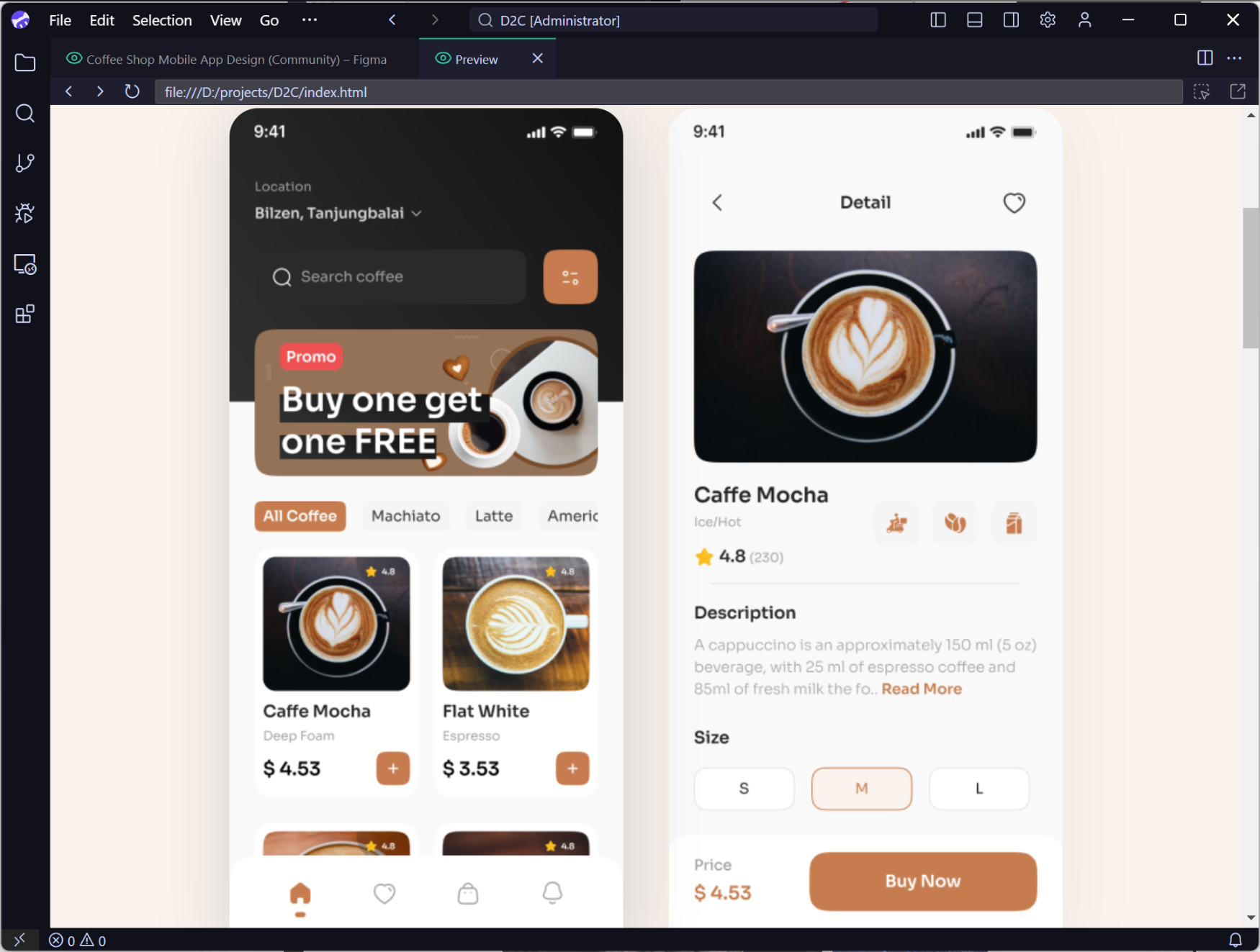 将 Figma 设计转换成代码后,Preview 效果如下图所示,可以看到,精确度非常高。