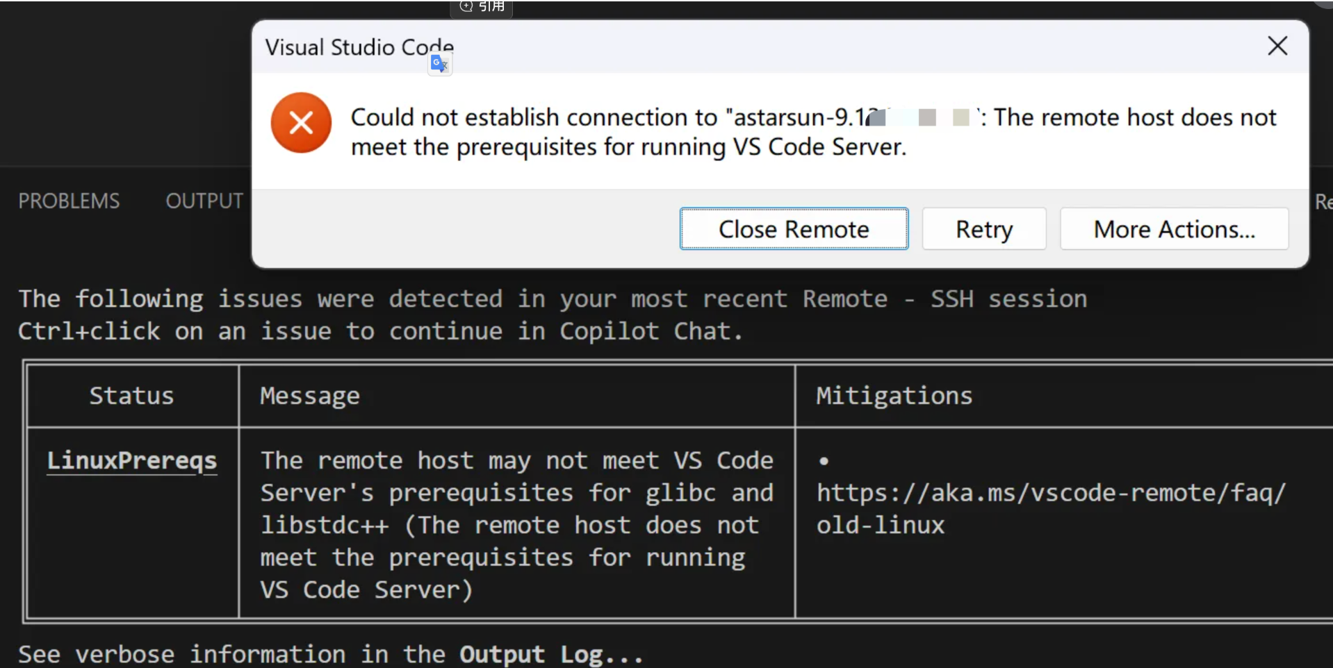 遇到一下远程 SSH Cloud not establish connection to 失败解决办法,从 VSCode 官网Remote Development FAQ显示从 1.99 版本开始 ,远程开发功能就强制要求远程主机的 glibc>=2.28