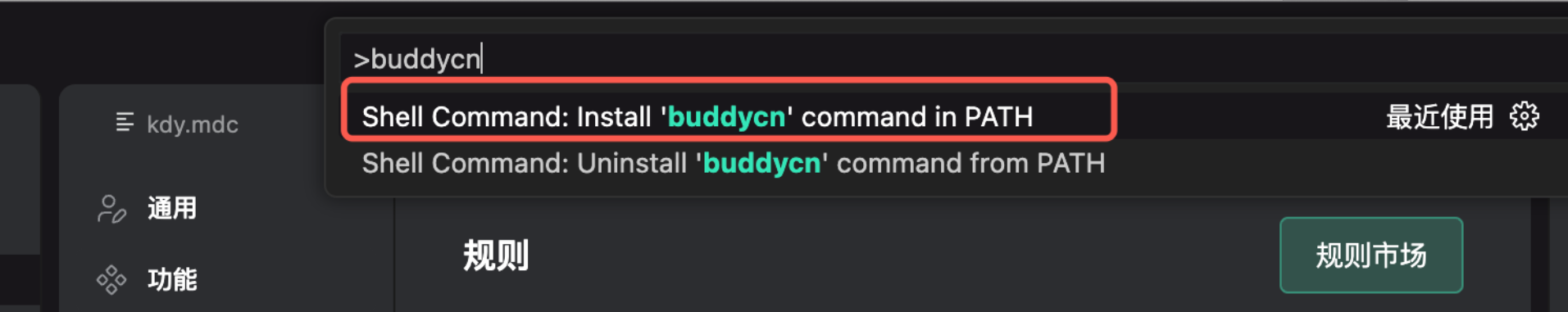 通过上箭头 ↑ + Command + P 调出安装窗口,输入 buddycn 进行安装 buddycn。