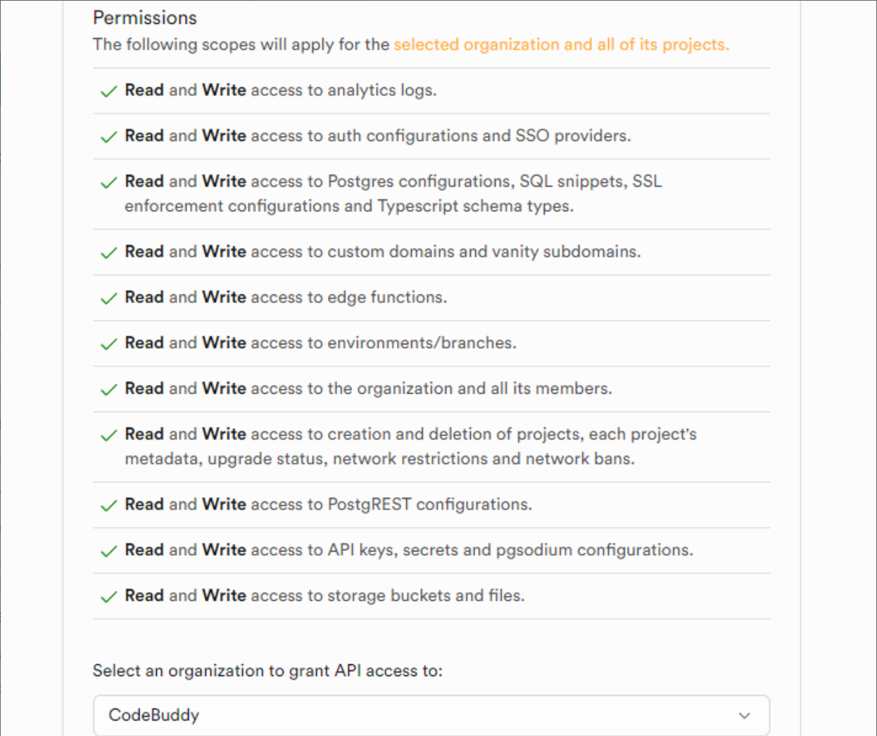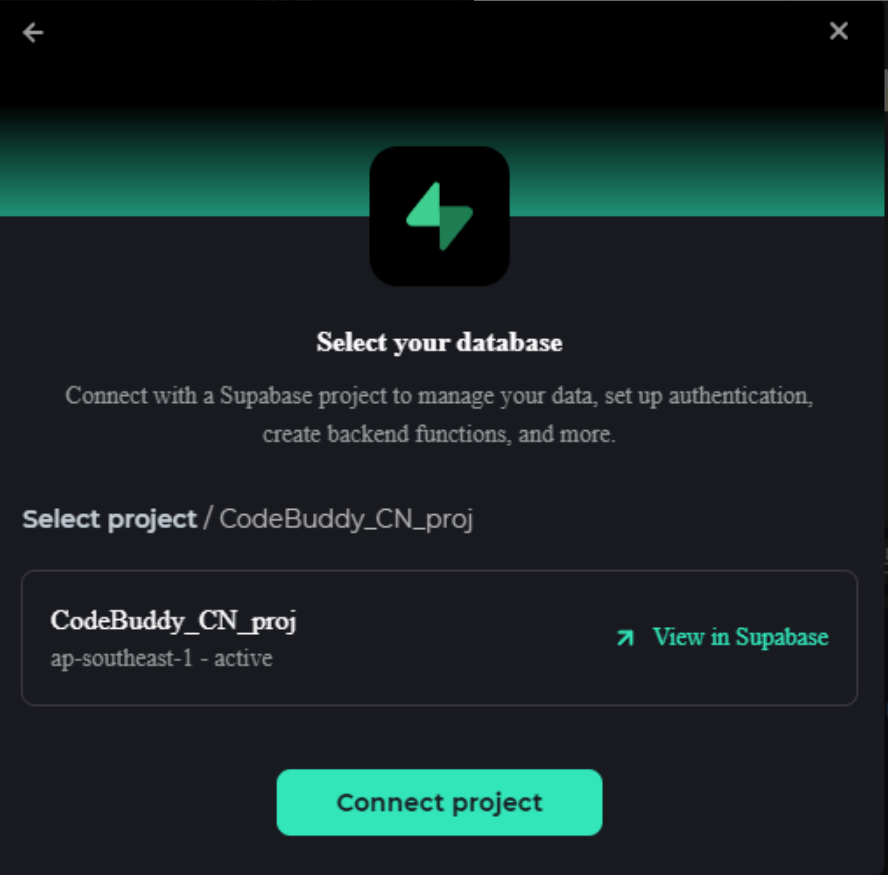 选择要连接的现有 Supabase 项目,或创建一个新项目。
