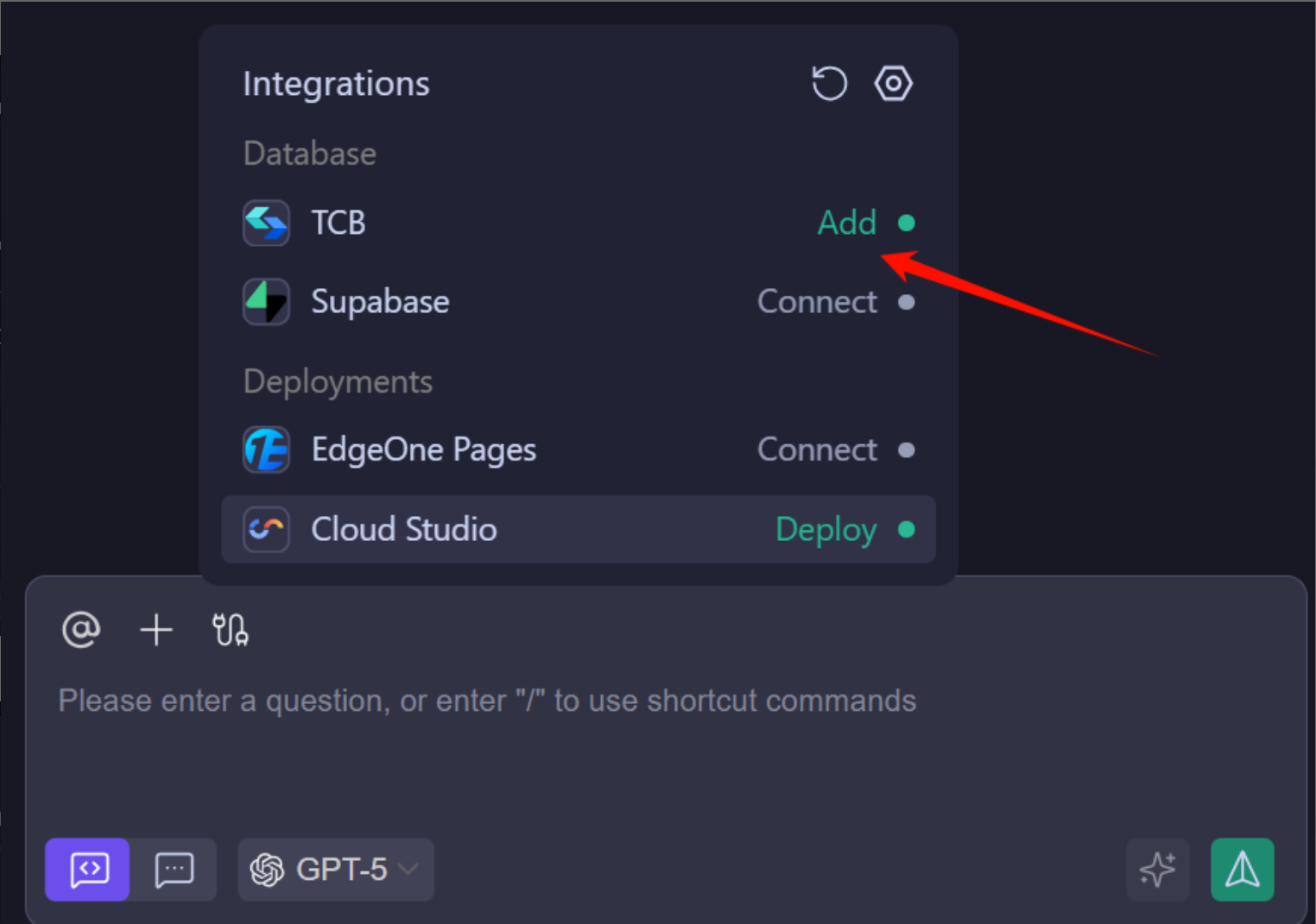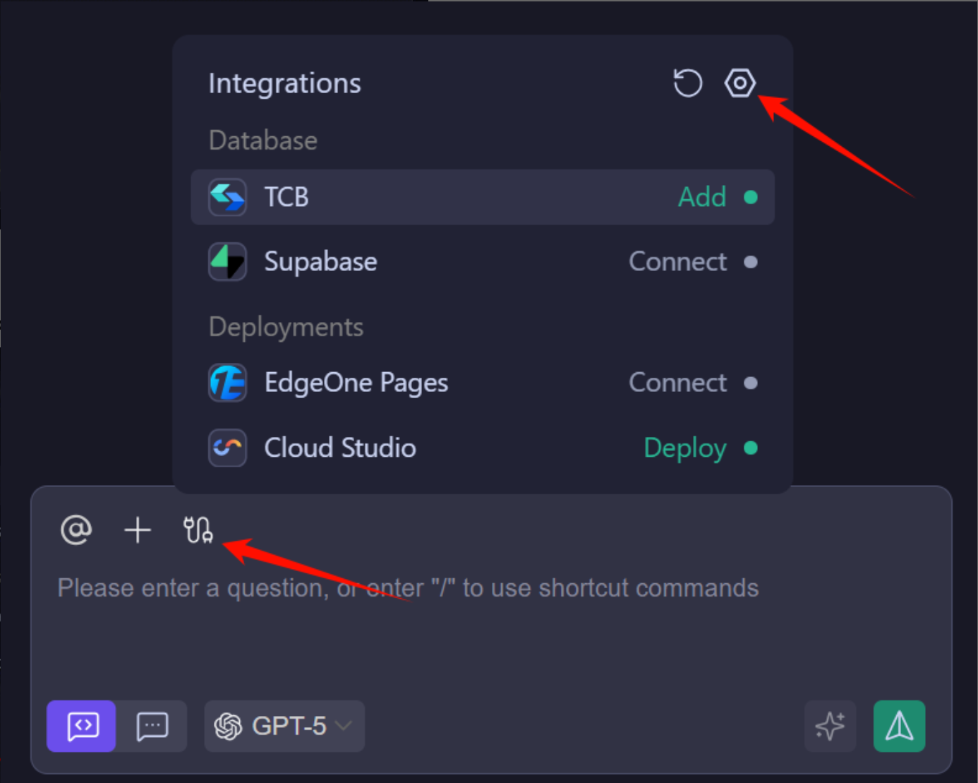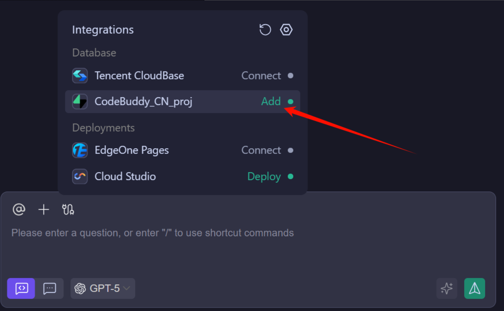 CodeBuddy 集成了 Supabase、Tencent CloudBase 后端服务,无需进行繁琐的配置,即可获得一个可运行的后端环境。