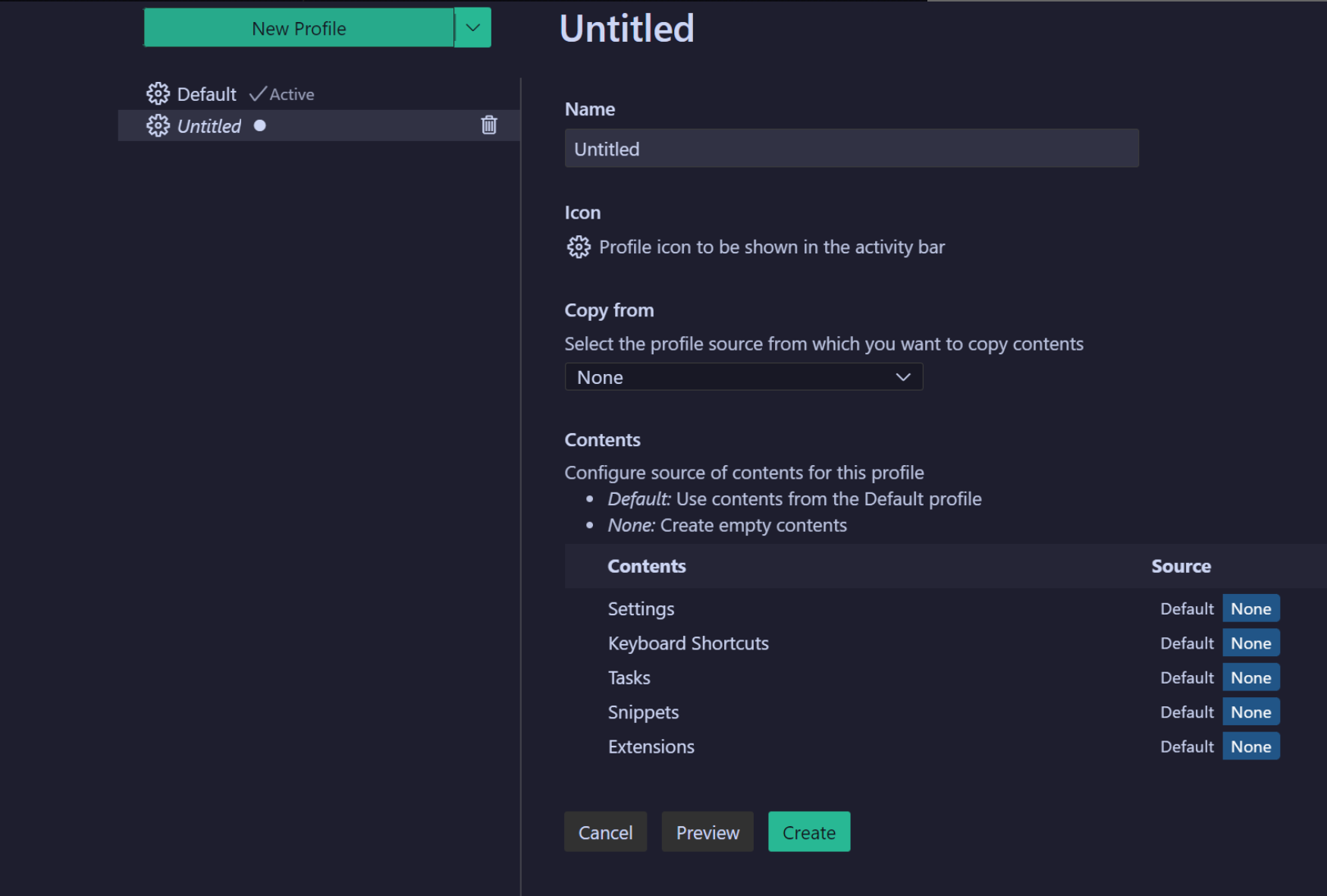 Existing Profiles:从已创建的其他配置文件中复制内容,例如Default。