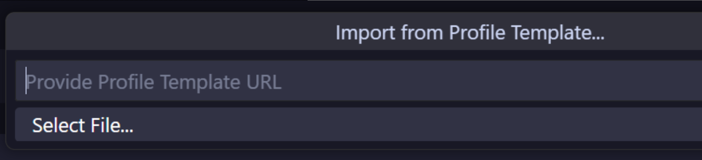打开配置文件编辑器,点击 New Profile 右侧的下拉菜单按钮,在下拉列表中选择 Import Profile。