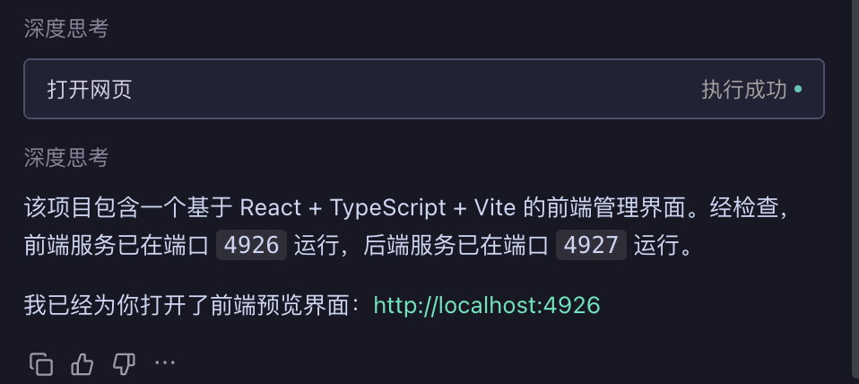 在 CraftAgent 下代码生成或修改执行完后,Agent 自动调用工具打开 Preview。