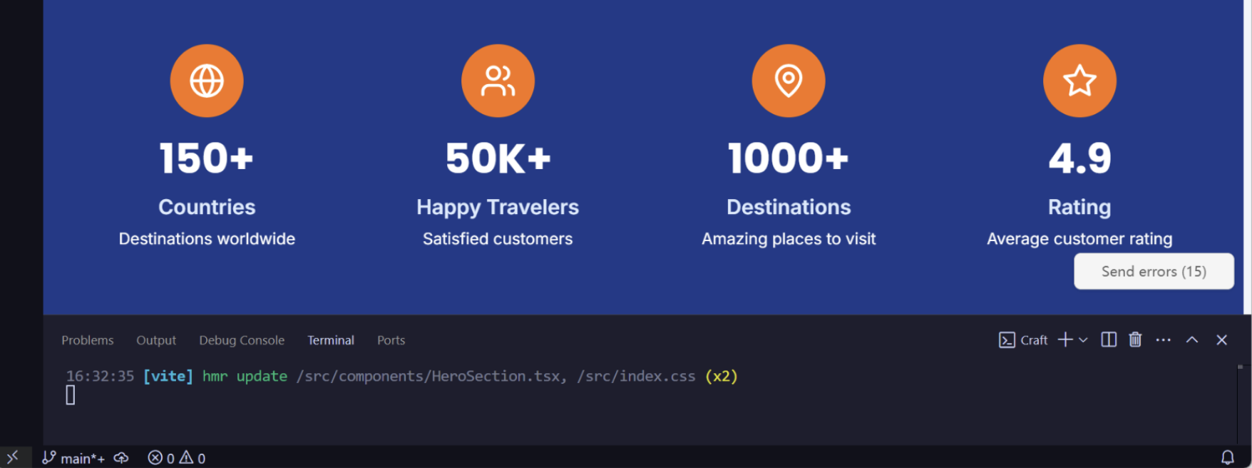 - 如果预览窗口显示错误信息,点击 Send Errors 将错误发送给 AI 进行分析
