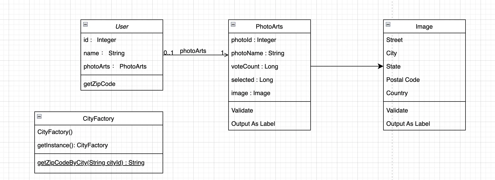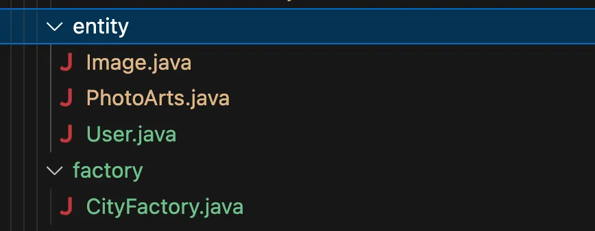 按以下步骤实践跨文件能力。下图是项目局部图,entity 定义了三个对象,他们彼此有对象关联。同时 User 类里的 ZipCode 需要从一个单例工厂中创建获得。
