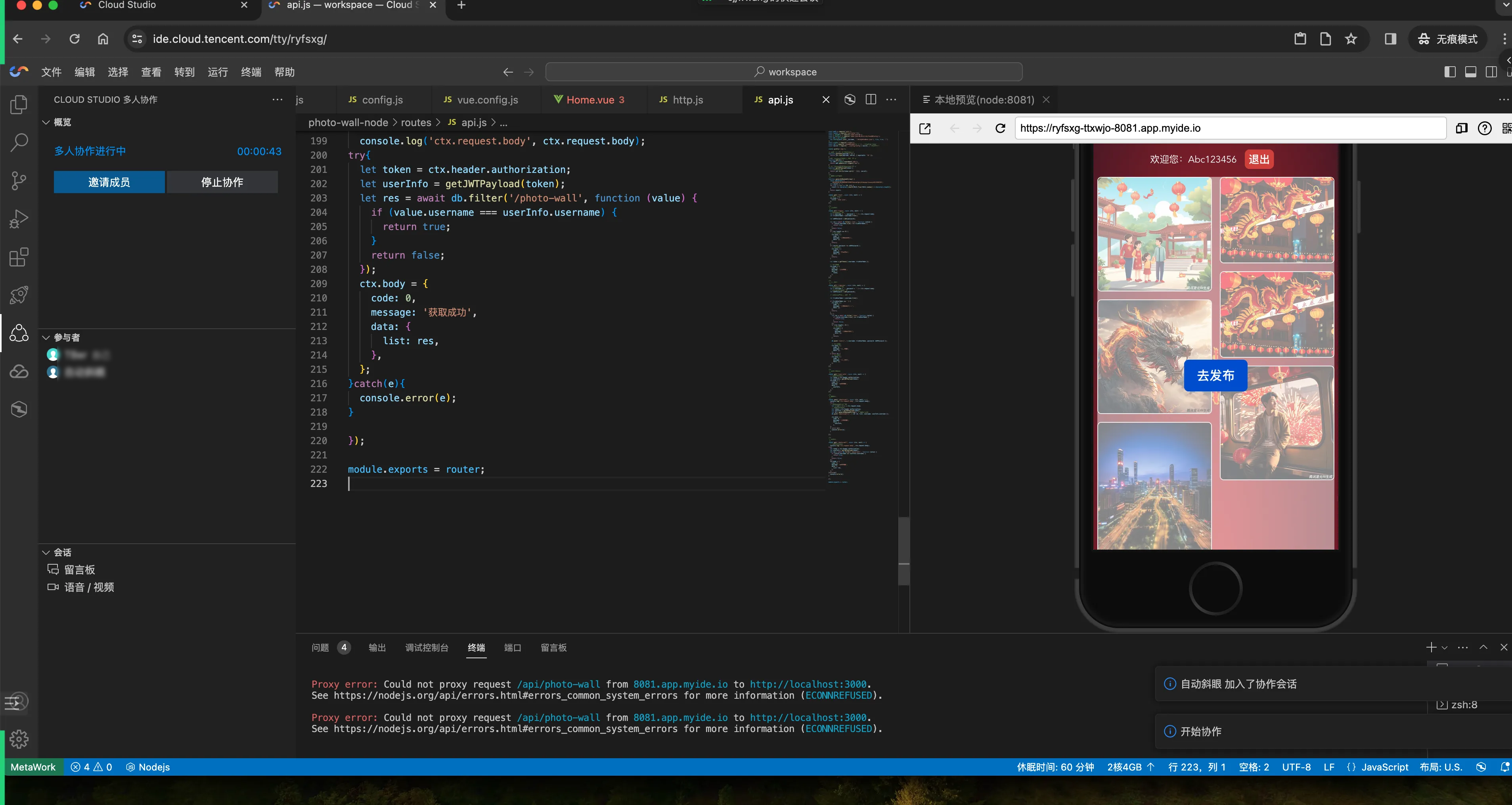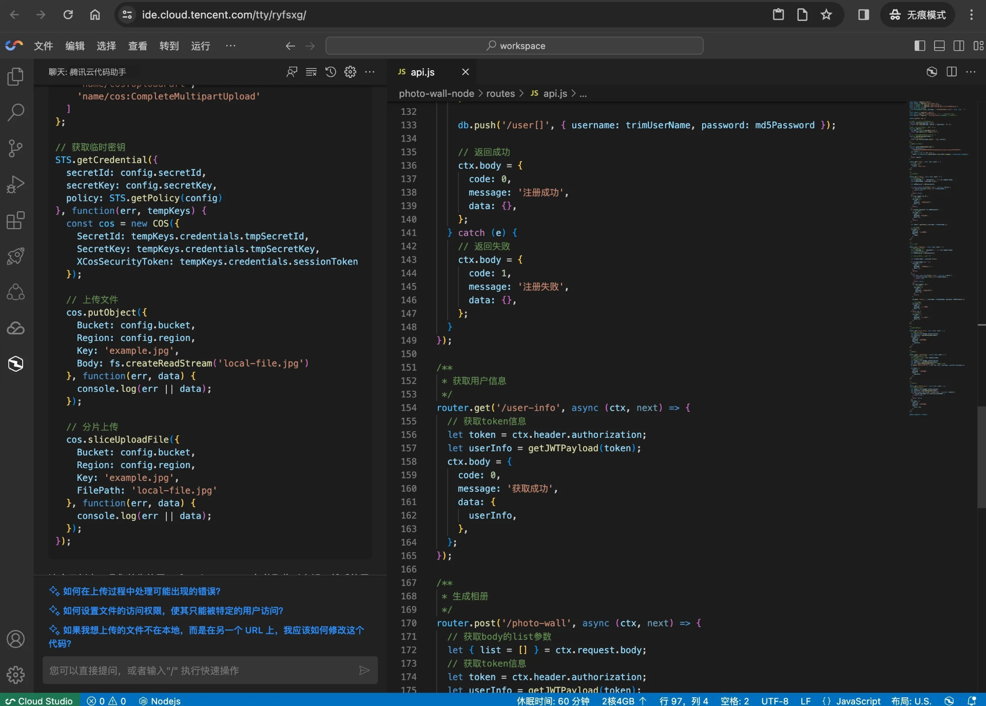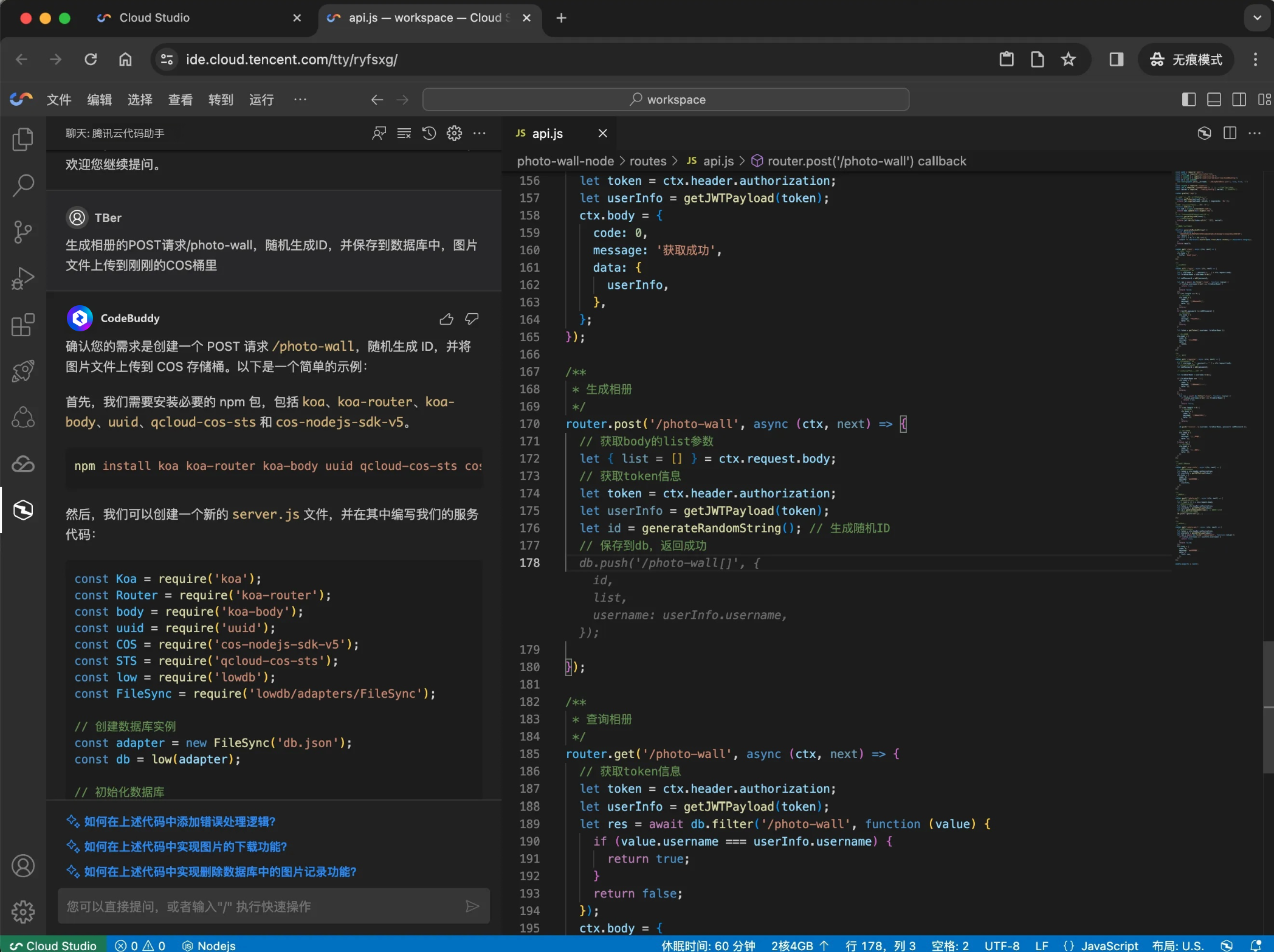 在云端开发平台 Cloud Studio 之上,通过代码助手的加持,可以快速搭建并开发一个过年都用得到的在线相册的小应用。 请单击 体验地址 前往。