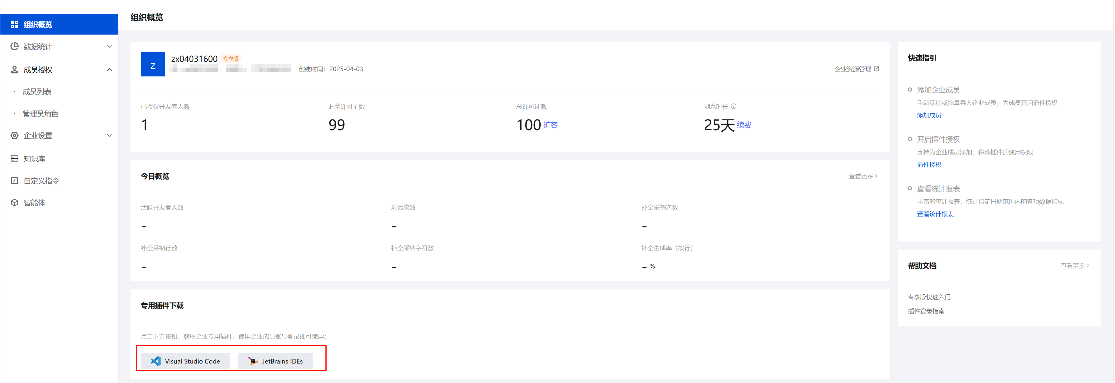 进入企业域名后台 <企业id>.copilot.qq.com/admin,下载企业专用插件。