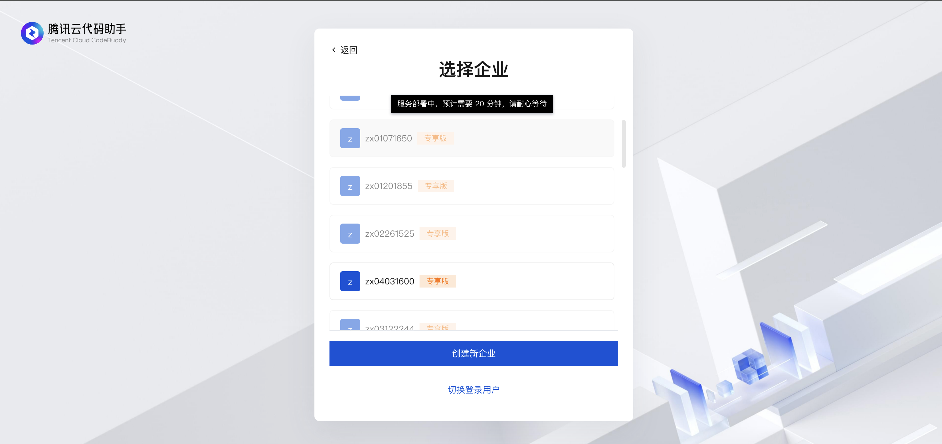 2. 专享版购买成功后需要约二十分钟的部署时间,部署完成后即可进入企业。