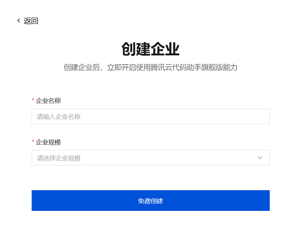 3. 输入企业名称、规模信息后完成创建。