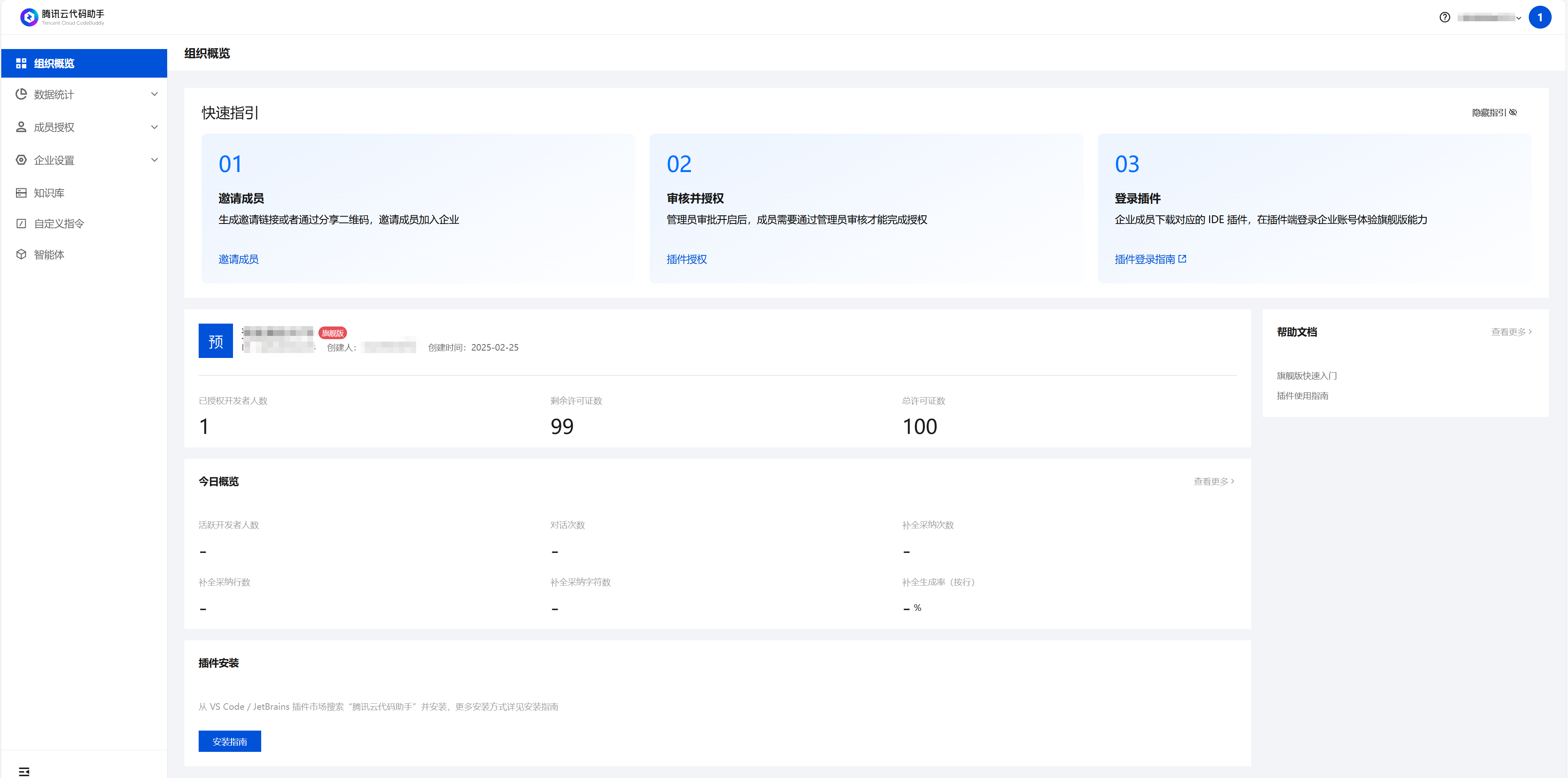 4. 创建完成后,进入企业管理后台。
