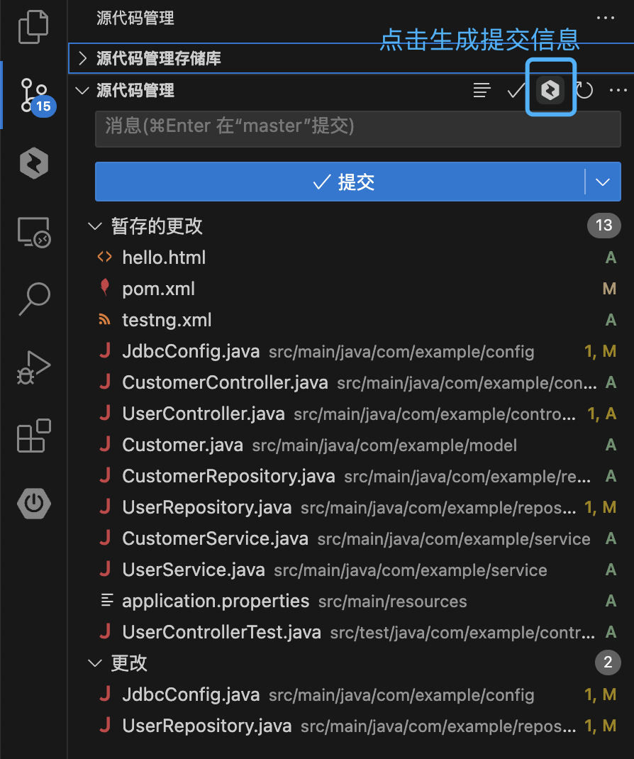 在本地 IDE 中提交代码变更时,支持一键唤起 AI,自动基于提交变更生成代码提交信息。该信息默认遵守 Conventional 提交信息规范,支持设置生成的语言、风格。借助 AI 快速生成规范化的提交信息,帮助开发者提升效率。