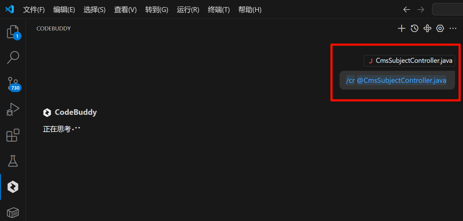 AI 辅助自评审功能,旨在提高 IDE 下的代码自我审查的效率和质量。在 Chat 模式中使用,可以通过/cr指令直接触发本地自动化代码审查(AICR)。
