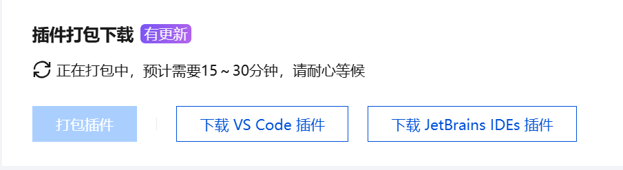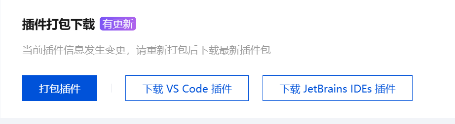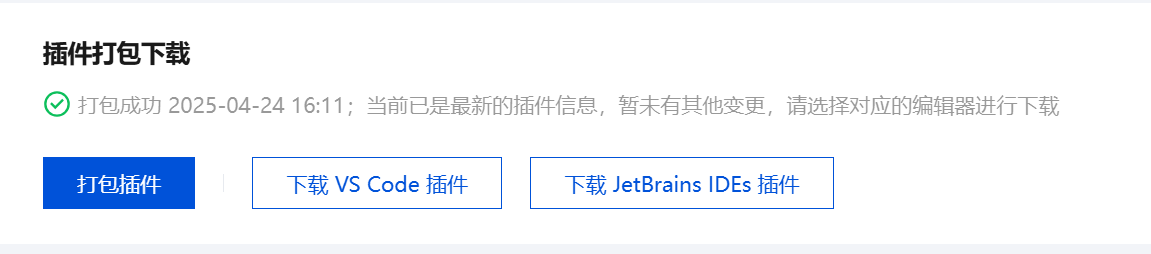 插件打包成功,支持下载 VS Code 插件和 JetBrains IDEs 插件进行安装使用。