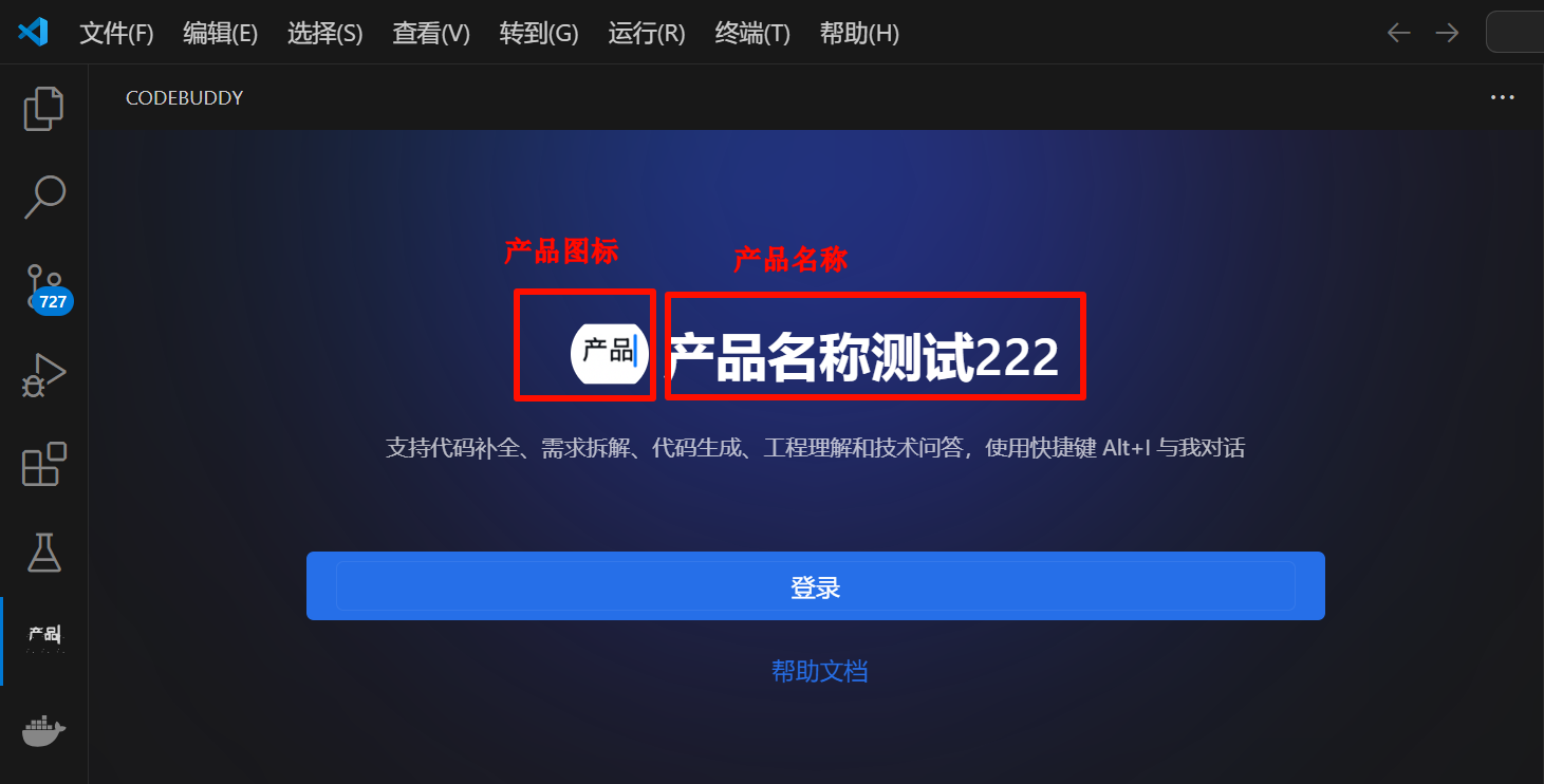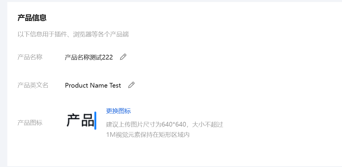 产品信息部分包含对产品名称、产品英文名和产品图标的配置,用于插件、浏览器等各个产品端。