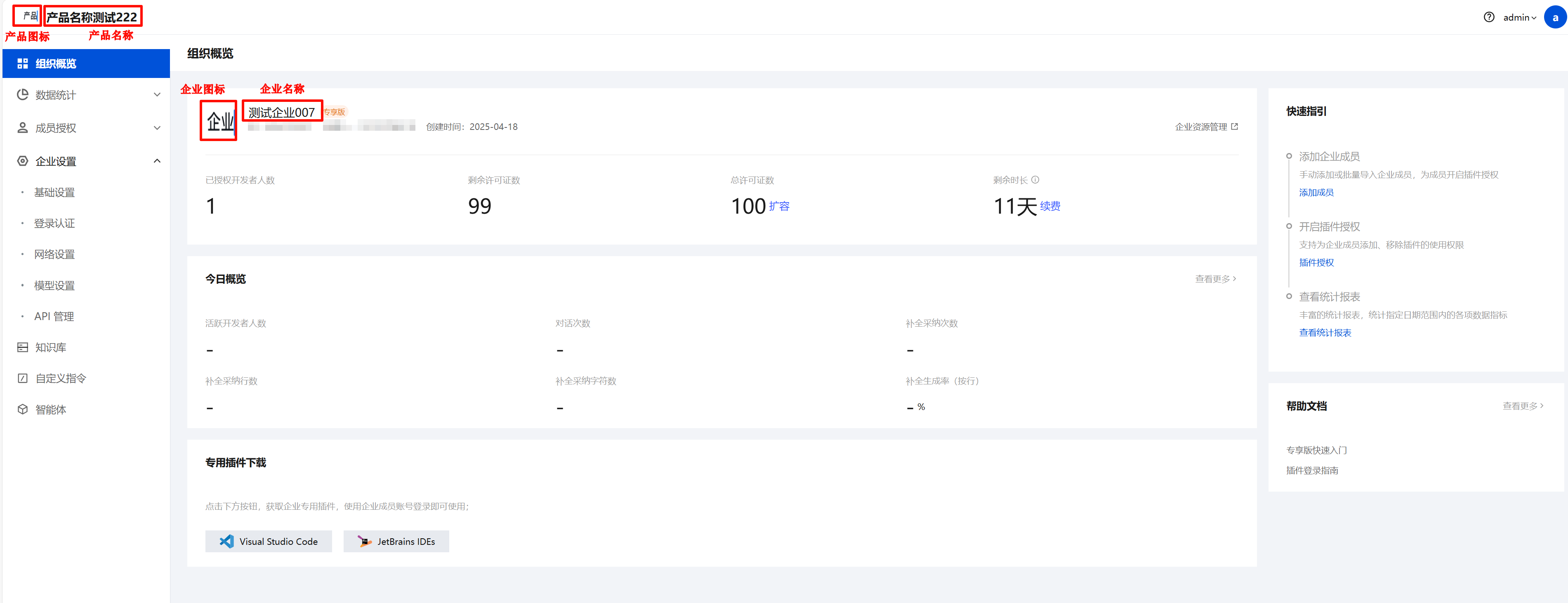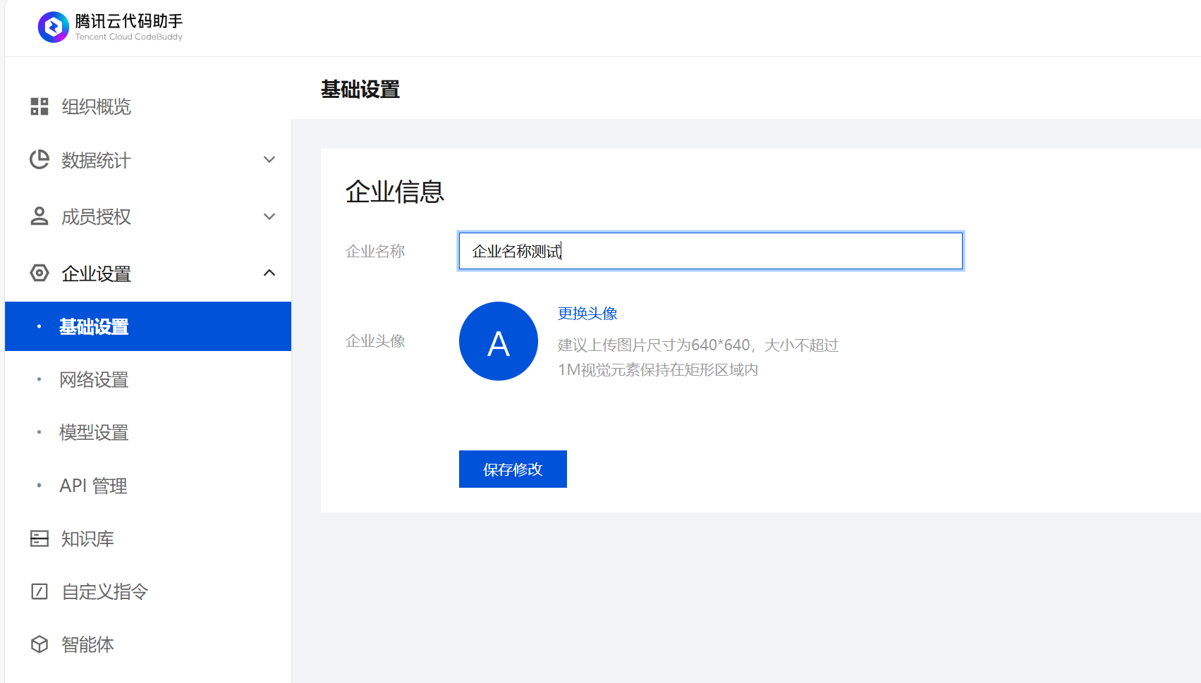 腾讯云代码助手支持企业管理员对企业信息进行基础设置,例如设置企业名称、企业头像以及产品名称、产品图标等,但每个版本的具体功能有所不同。下面为您进行介绍。