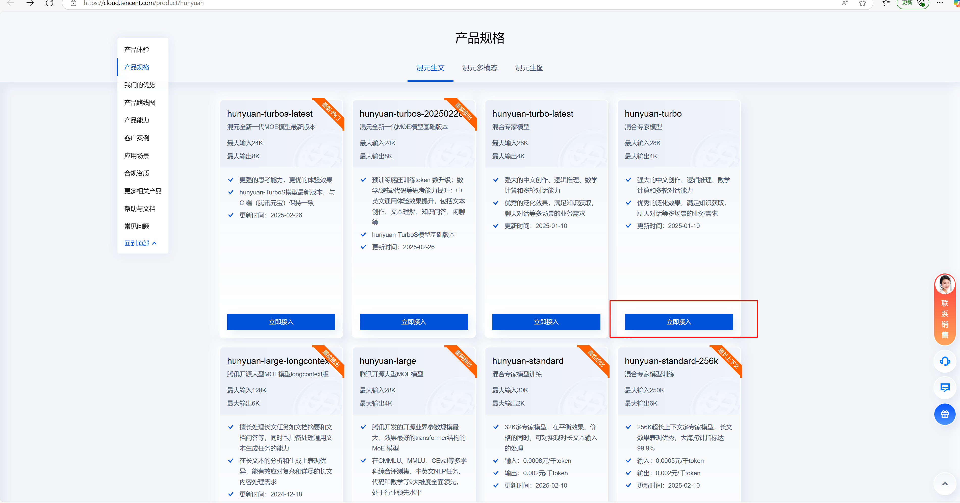 填写模型信息。例如部署 hunyuan-turbo 模型,填写信息示例如下: