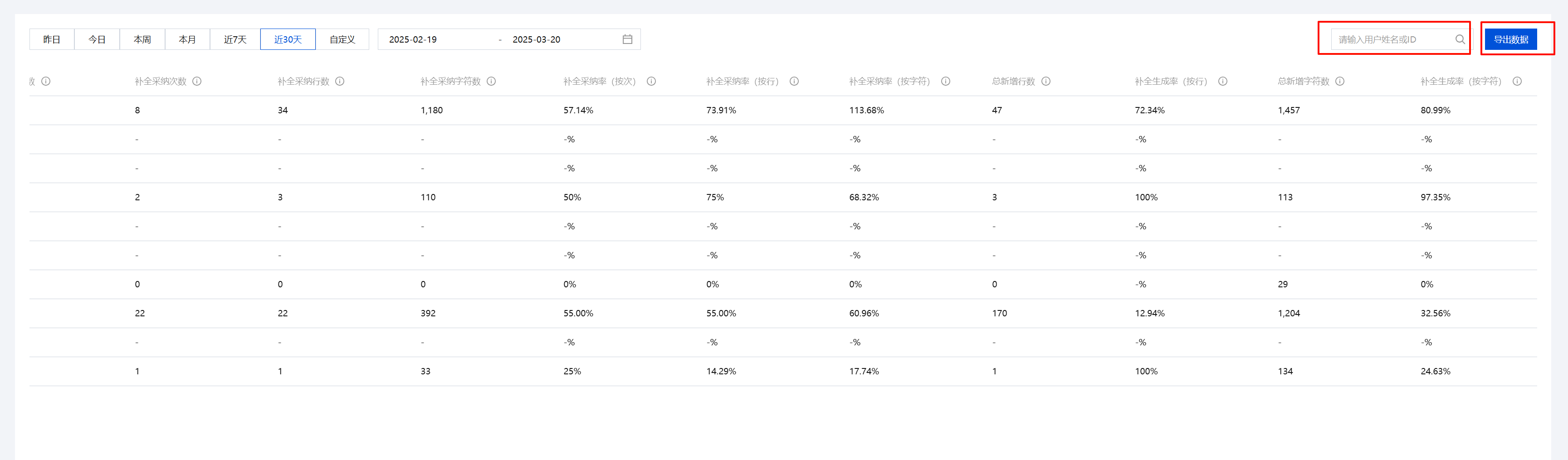 | 补全采纳行数 | 采纳补全内容的总行数 |