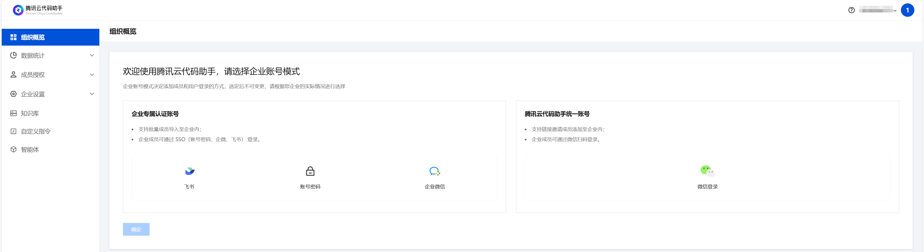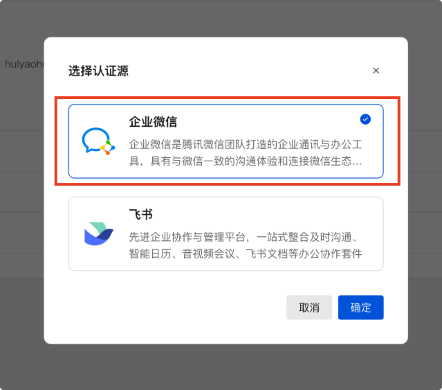 认证源集成需选择企业专属认证账号,当前仅新建企业支持该类账号模式,选择后无法更改,请谨慎操作。