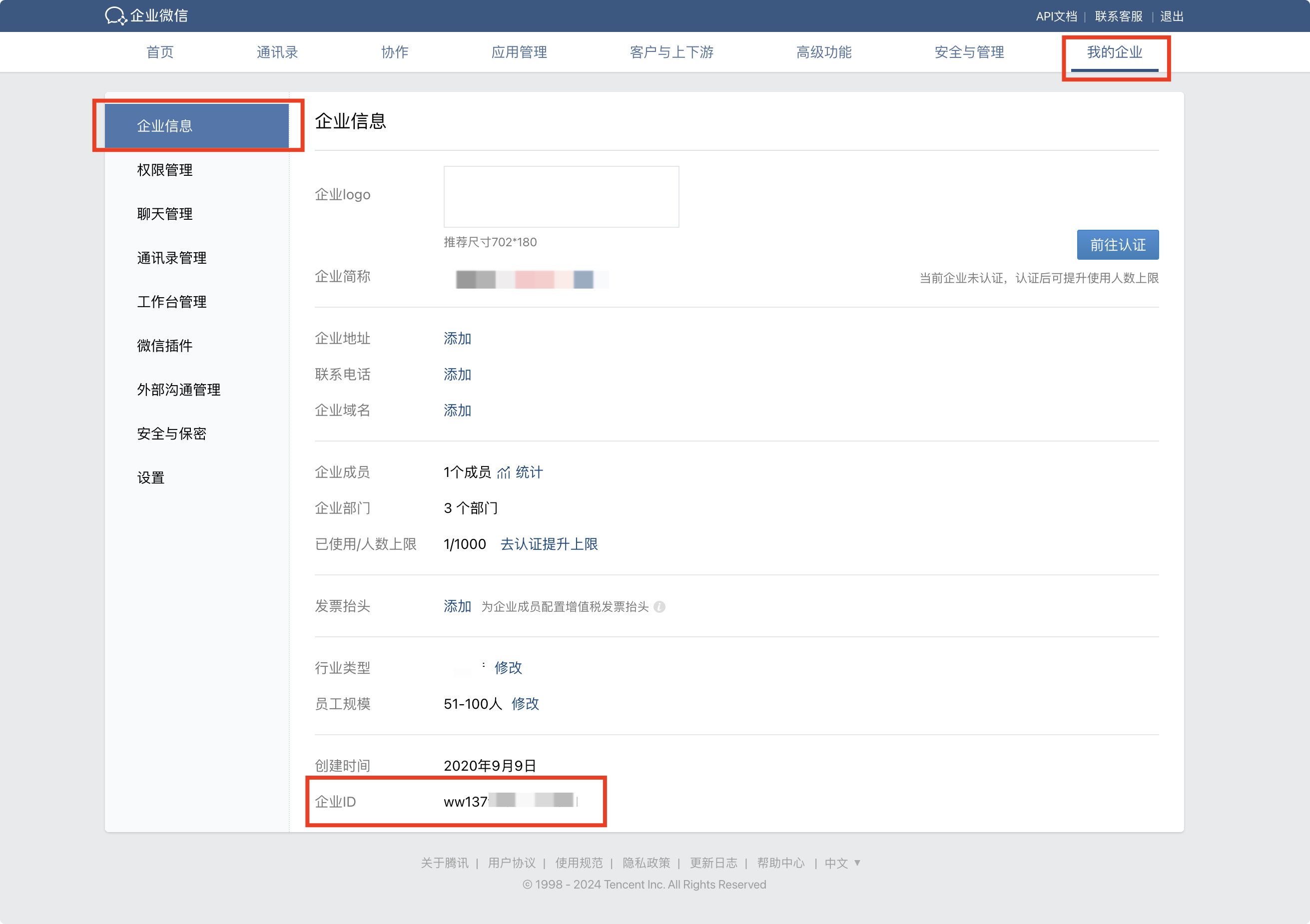 企微 ID 获取位置如图: