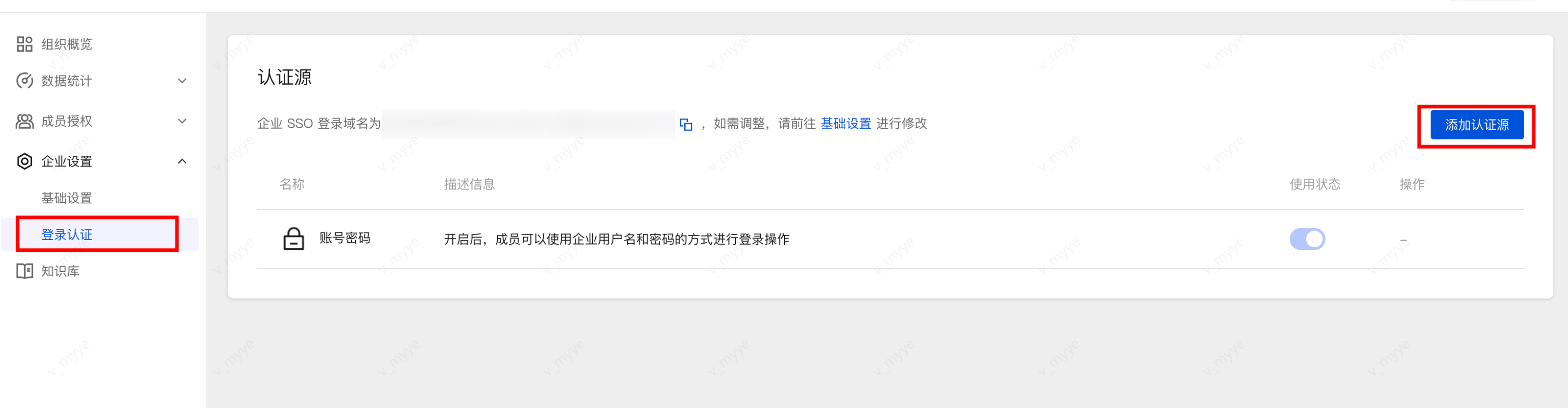 在认证源列表中,将企微打开即可,若不需要其它认证源则将其关闭,仅保留企微认证源。