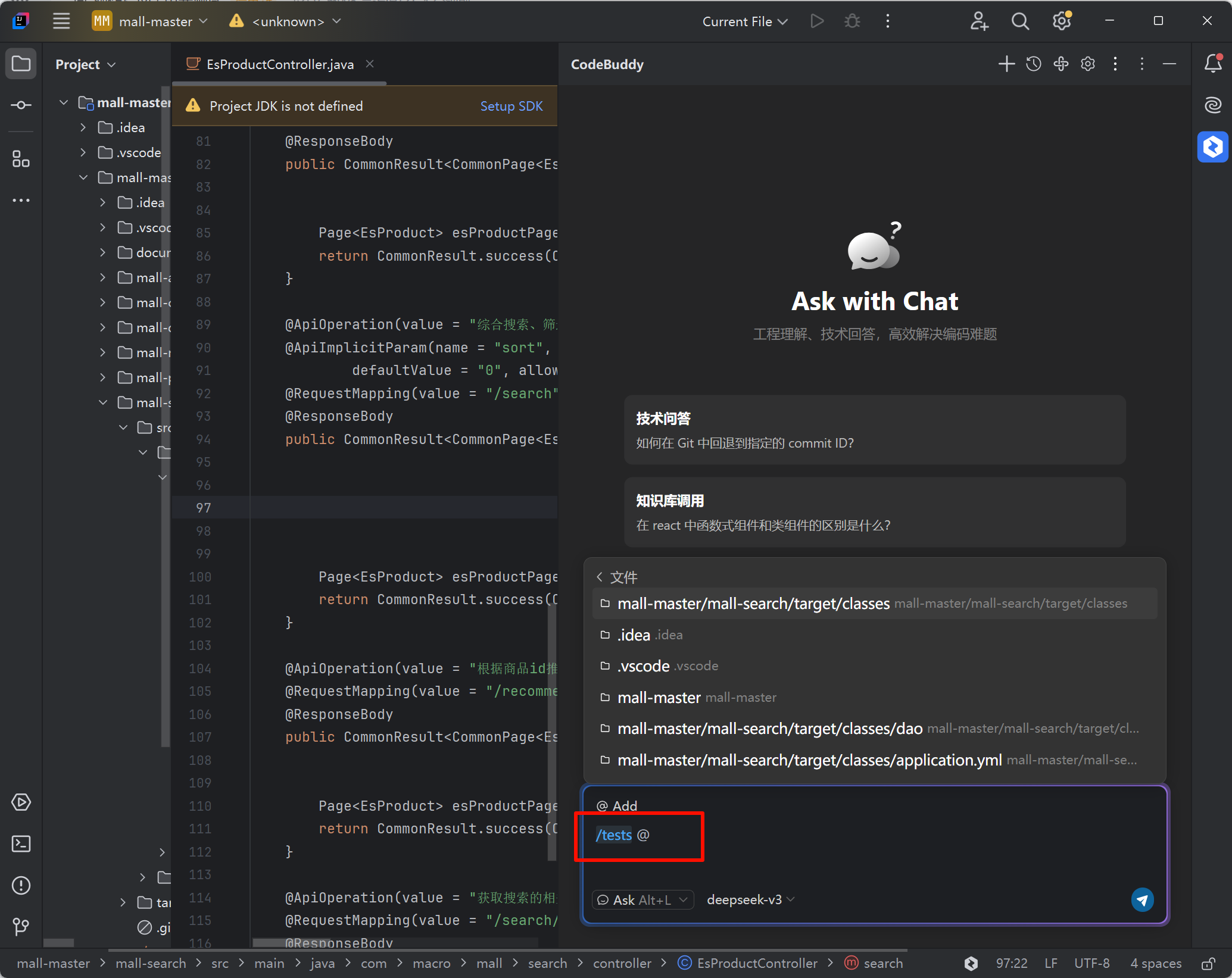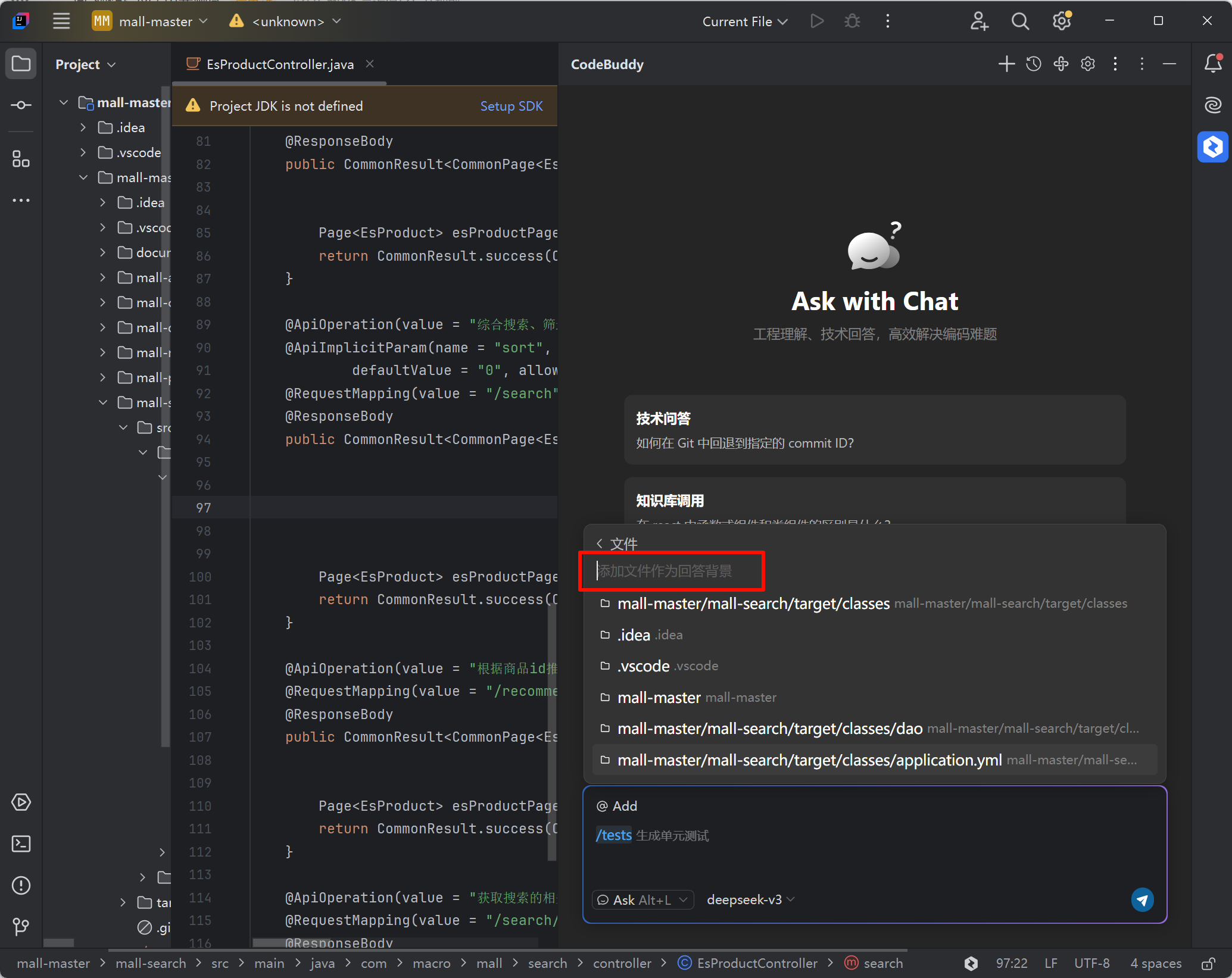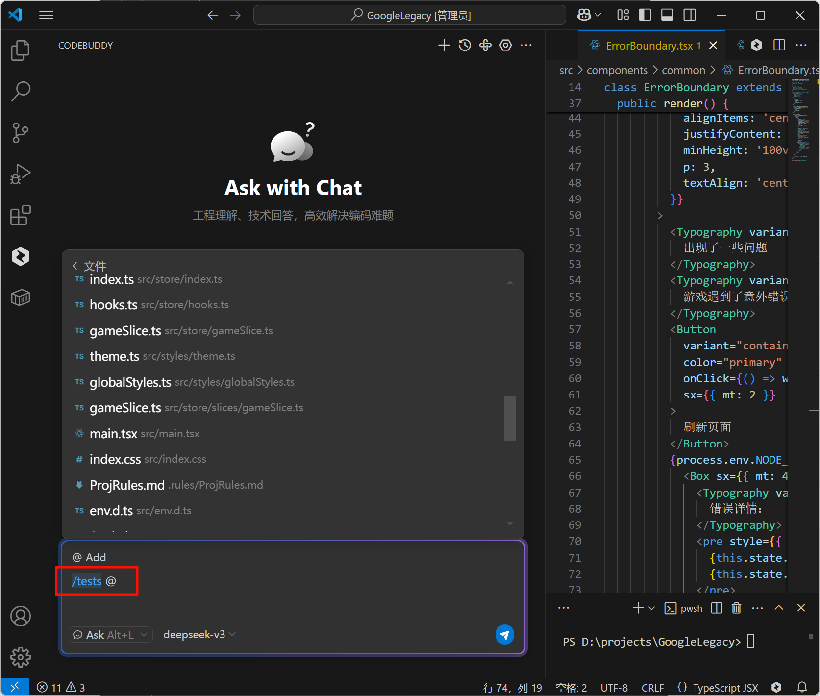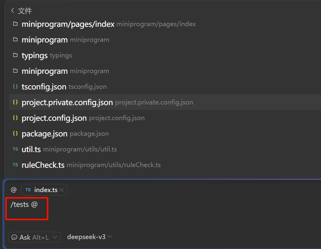 /tests指令,然后通过@ Add添加单个或多个文件 / 目录,最多可以选择15个文件。