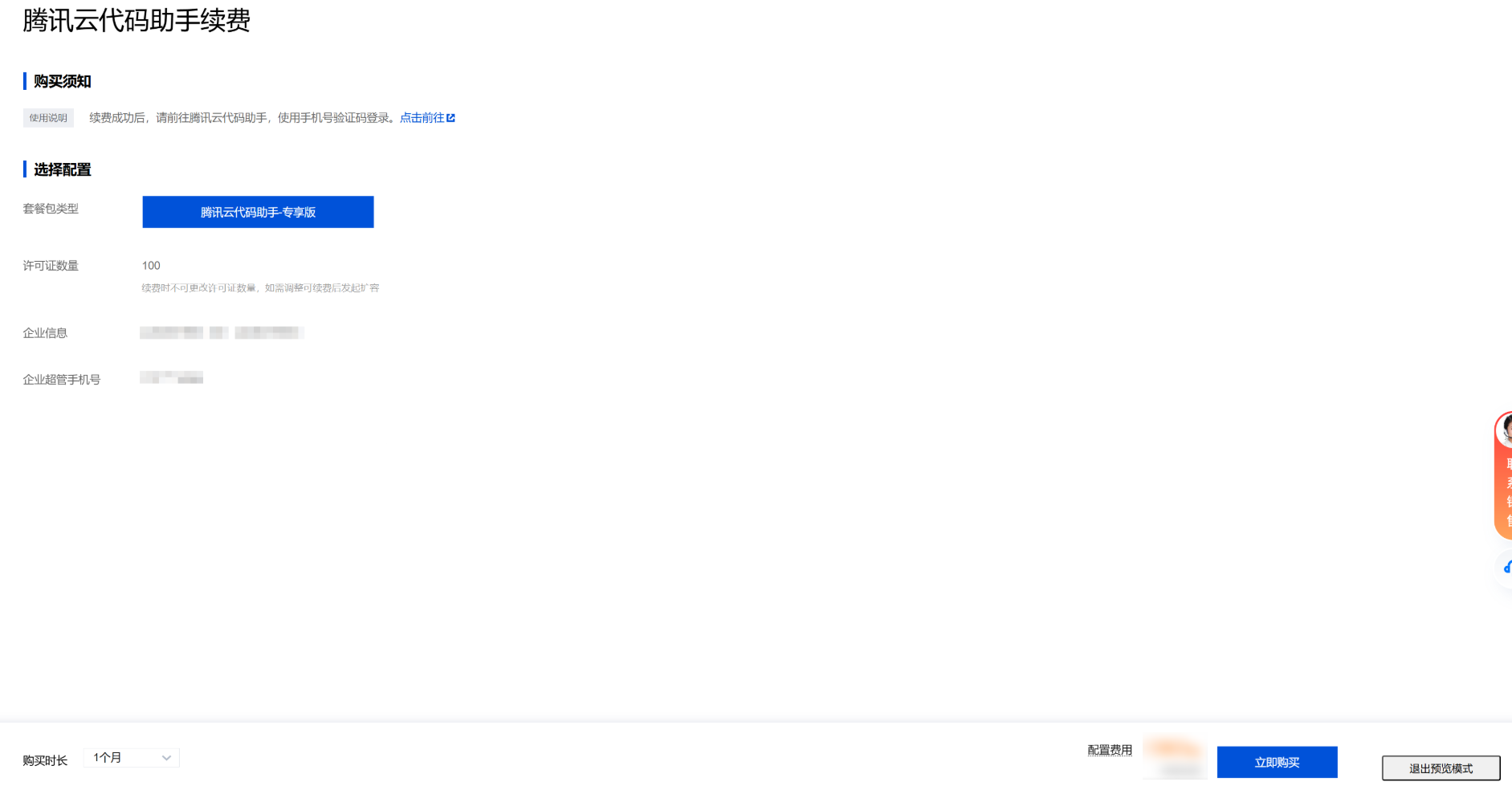 登录 企业管理后台,在企业概览中发起续费,将自动跳转至续费购买页。