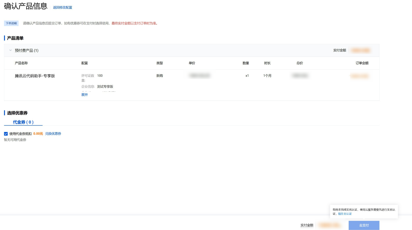 登录购买页,发起专享版企业新购,购买时输入企业名称、企业 ID、超管手机号。